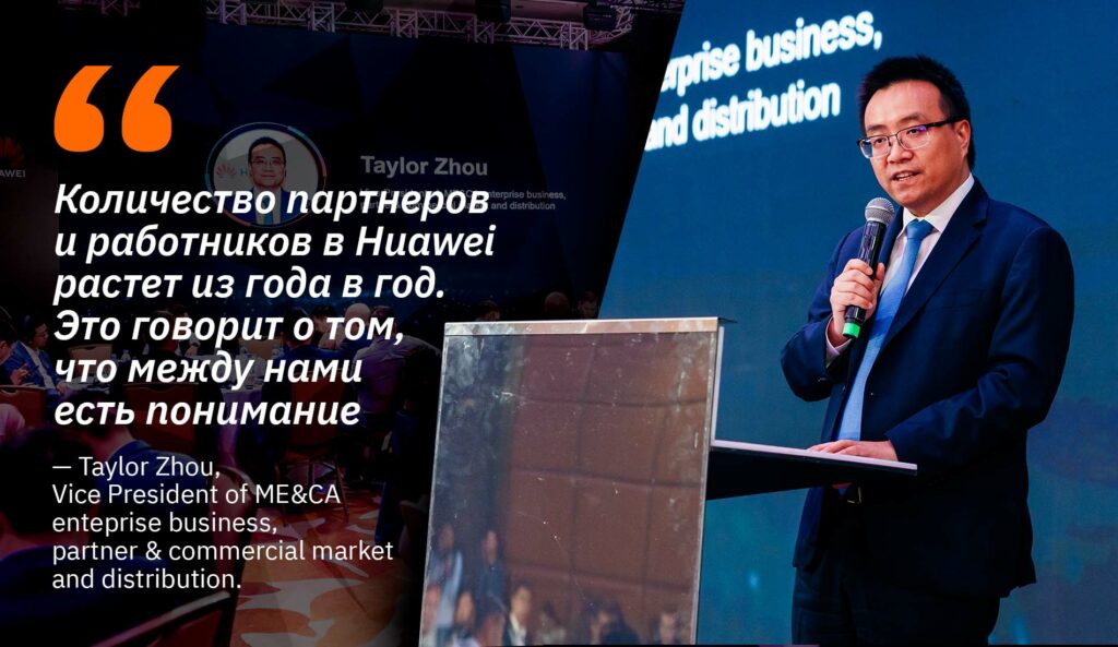 — У нас есть единый путь, и сегодня я хочу воспользоваться моментом, чтобы запечатлеть ту работу, которые мы с вами уже проделали и еще будем делать ради общего успеха. Большое спасибо за ваше доверие к нам! Результаты за 2024 год — это то, что мы построили вместе. В коммерческом рынке этого региона мы планируем расширяться, улучшать наши продукты и дистрибуцию. Количество партнеров и работников в Huawei растет из года в год. Это говорит о том, что между нами есть понимание. — добавил во вступительной речи Taylor Zhou, Vice President of ME&CA enteprise business, partner & commercial market and distribution.